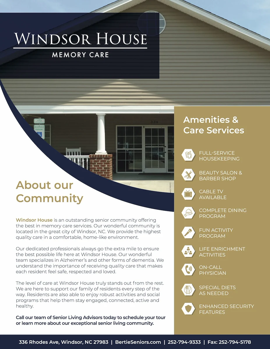 Windsor House Memory Care, located in Windsor, NC offers assisted living & memory care.